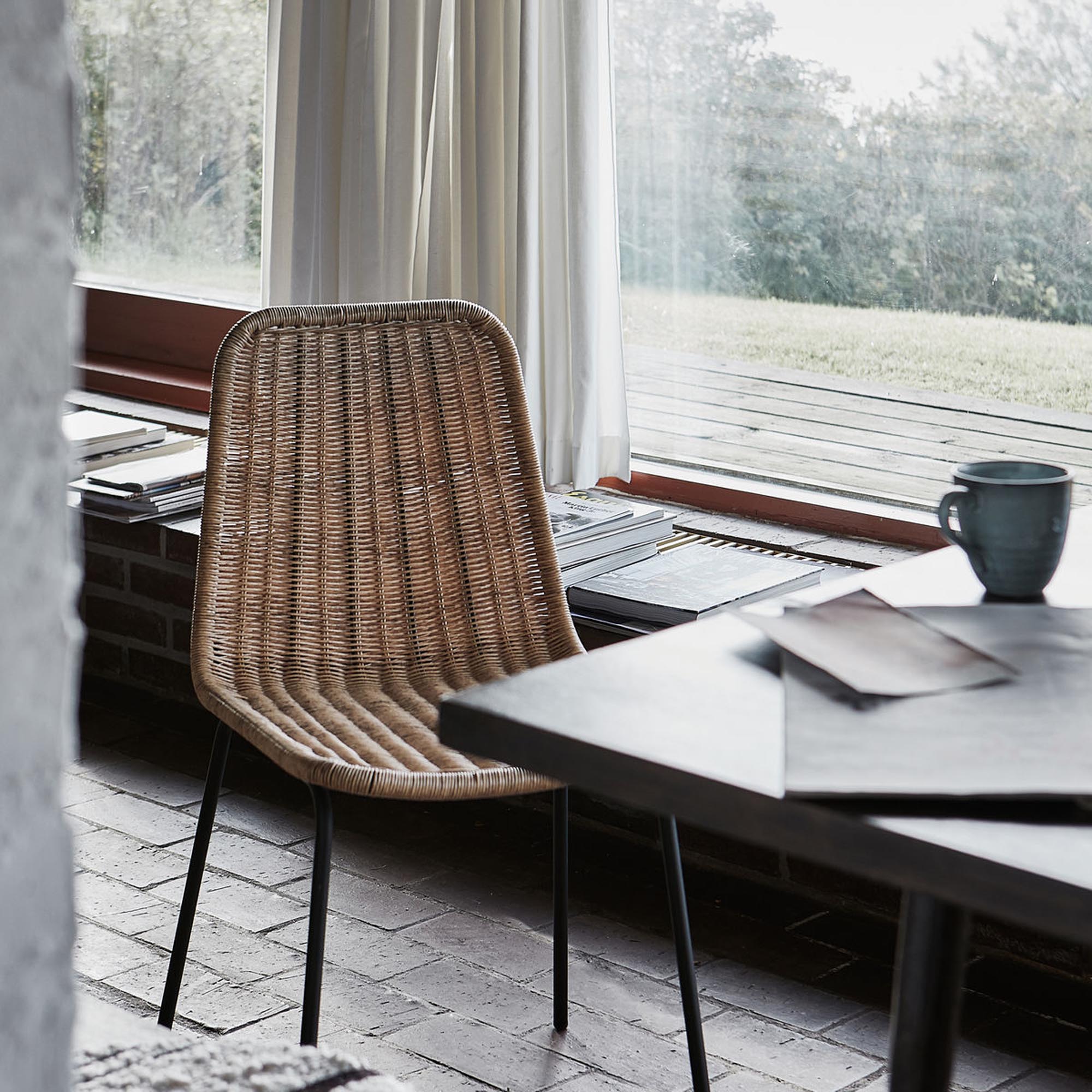The combination of robust iron and a braided material gives the chair an extraordinary stability and longevity, while the natural design creates a welcoming atmosphere. The dark iron legs provide a modern contrast and underline the simple elegance of the chair. You will find matching accessories in our Dining room furniture collection further inspiration.