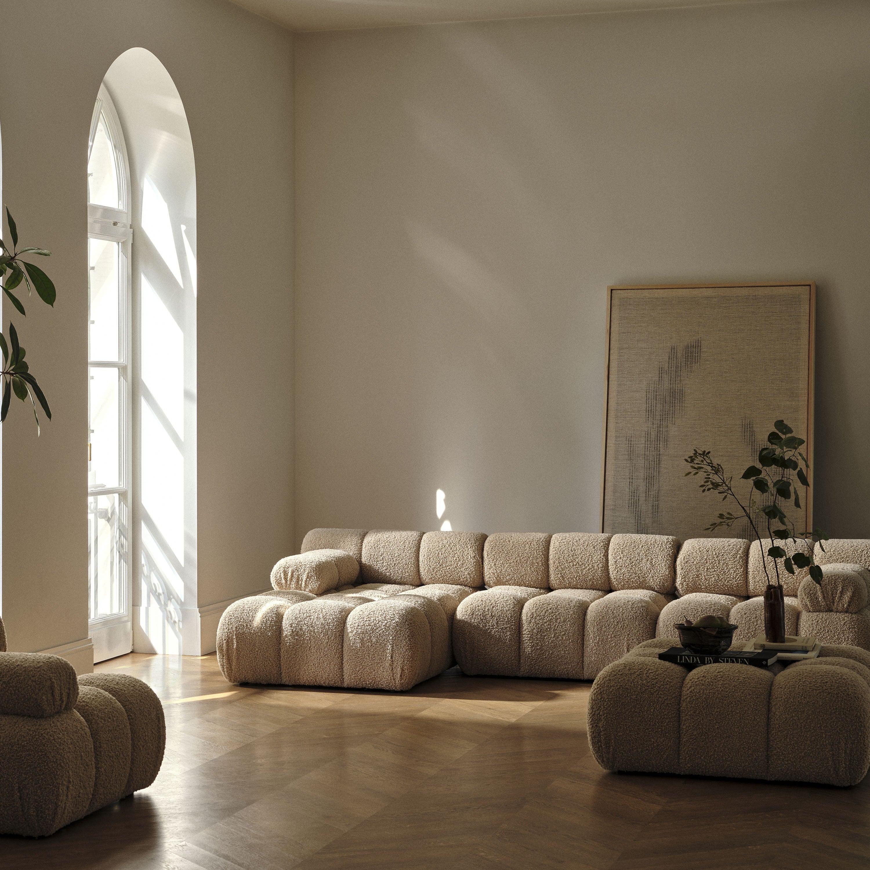 The Mamaia Panoramic Sofa impresses with its modern design and high-quality craftsmanship. With its generous dimensions, it accommodates up to six people, making it ideal for convivial evenings with friends or relaxed family afternoons. The soft upholstery and ergonomic shape ensure that you and your guests feel comfortable at all times.