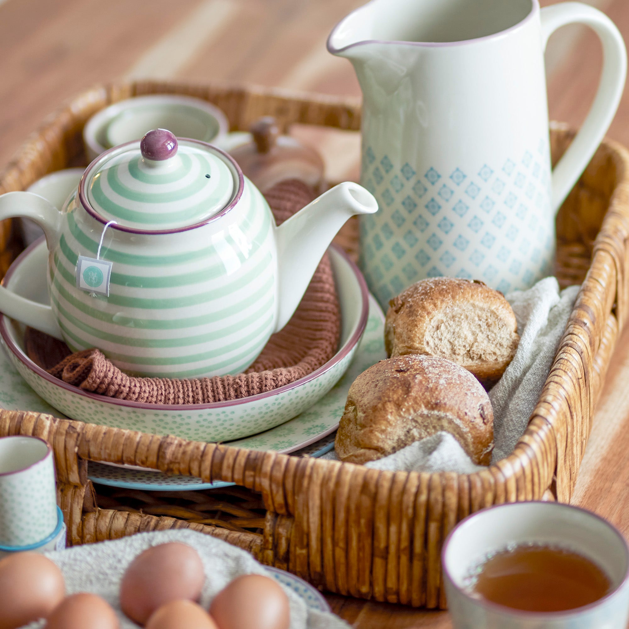 The set includes three unique mugs, each with an individual design and a vibrant color – Blue, Pink, Red and Green – This variety of colors and patterns allows you to Table decoration to design creatively and give every occasion a personal touch.