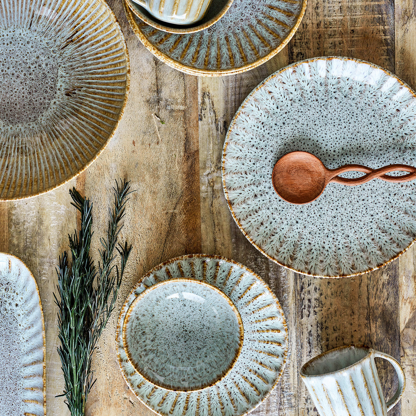 Le mélange harmonieux de bleu, vert et brun Les couleurs rappellent la nature et apportent une atmosphère fraîche et vibrante à votre cuisine. Associez cette assiette à notre Plats de service pour une composition de table harmonieuse.