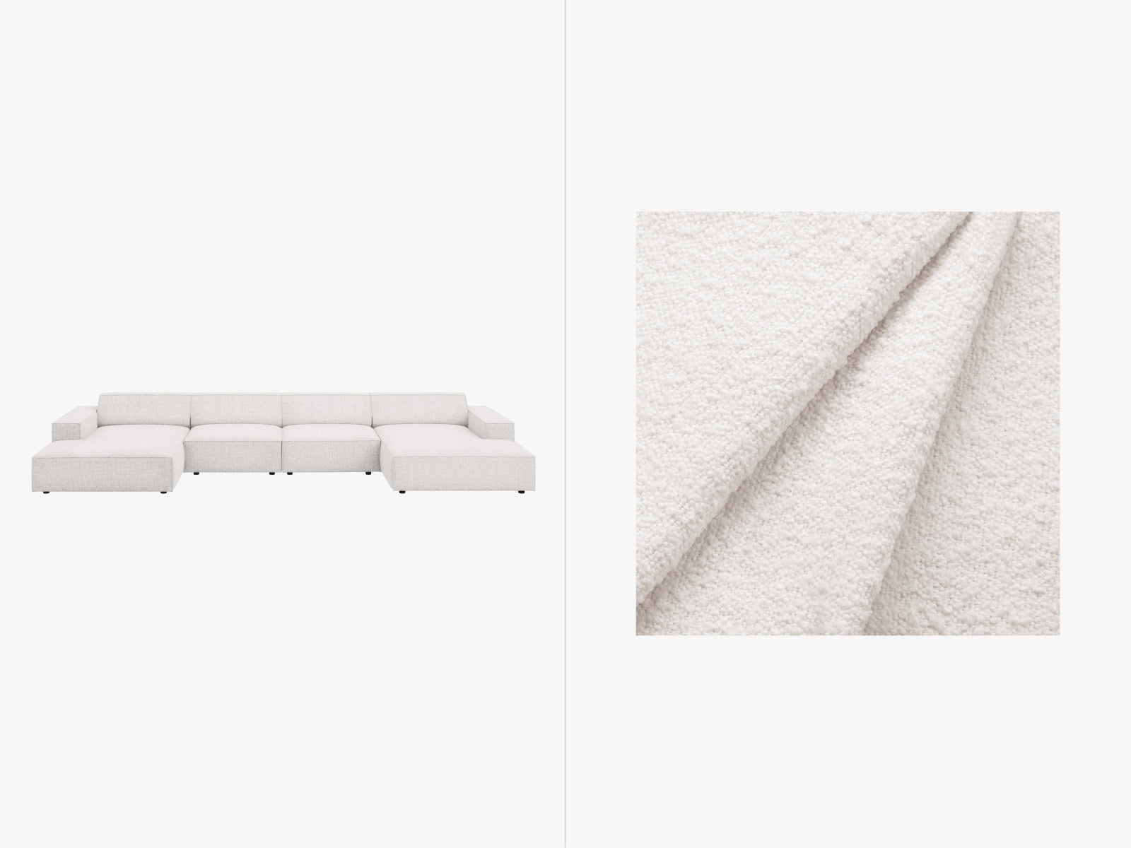 Découvrez le Canapé panoramique modulable Jodie BoucleCe canapé 6 places élégant et polyvalent signé