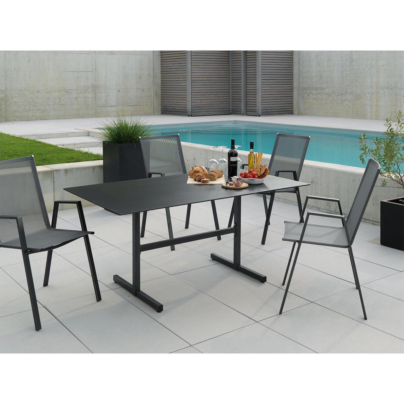 L'innovant Construction en fibre de verre offre non seulement une apparence attrayante, mais aussi une haute stabilité et longévité. Le Revêtement en poudre de polyester protège la table de Influences météorologiques et le rend particulièrement facile d'entretien. Ainsi, la surface reste éclatante même après de nombreux étés. Vous trouverez des produits assortis dans notre Collection de meubles de jardin autres meubles résistants aux intempéries.