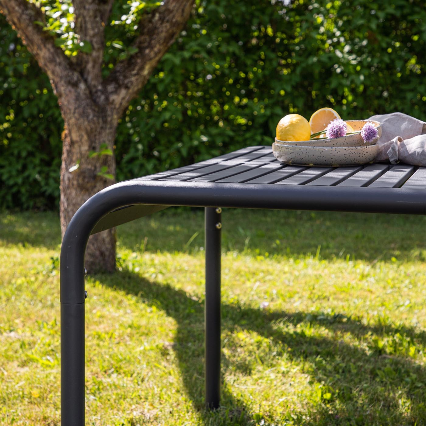 Der Metalltisch Säntis Basic von Schaffner vereint filigranes Design mit robuster Wetterfestigkeit – ein eleganter Blickfang für Garten und Balkon. Stilvoller Metalltisch Säntis Basic von Schaffner für den Garten.