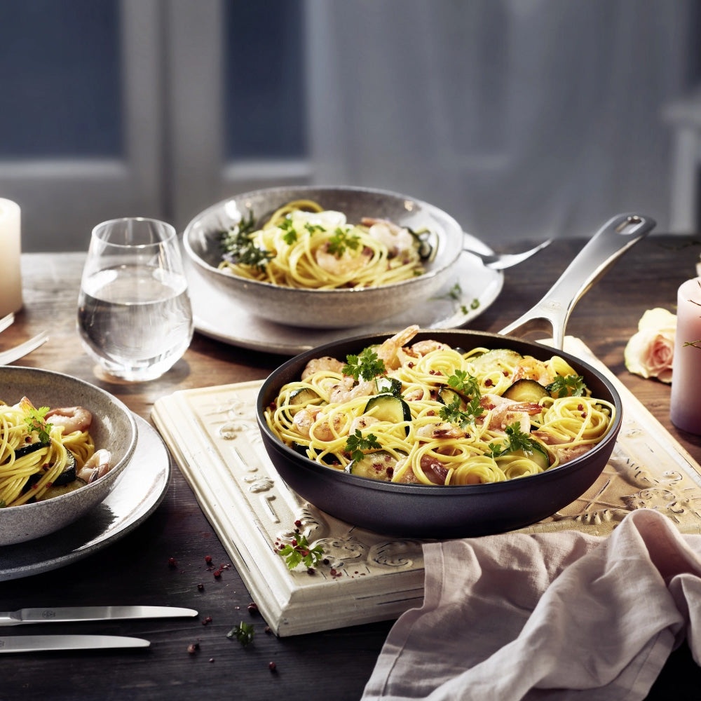 Er ist für alle Herdarten geeignet, einschliesslich Induktion, und bietet somit vielseitige Einsatzmöglichkeiten. Geniessen Sie das Kochen mit dem Alba Wok von Ballarini und entdecken Sie die Freude an der asiatischen Küche!