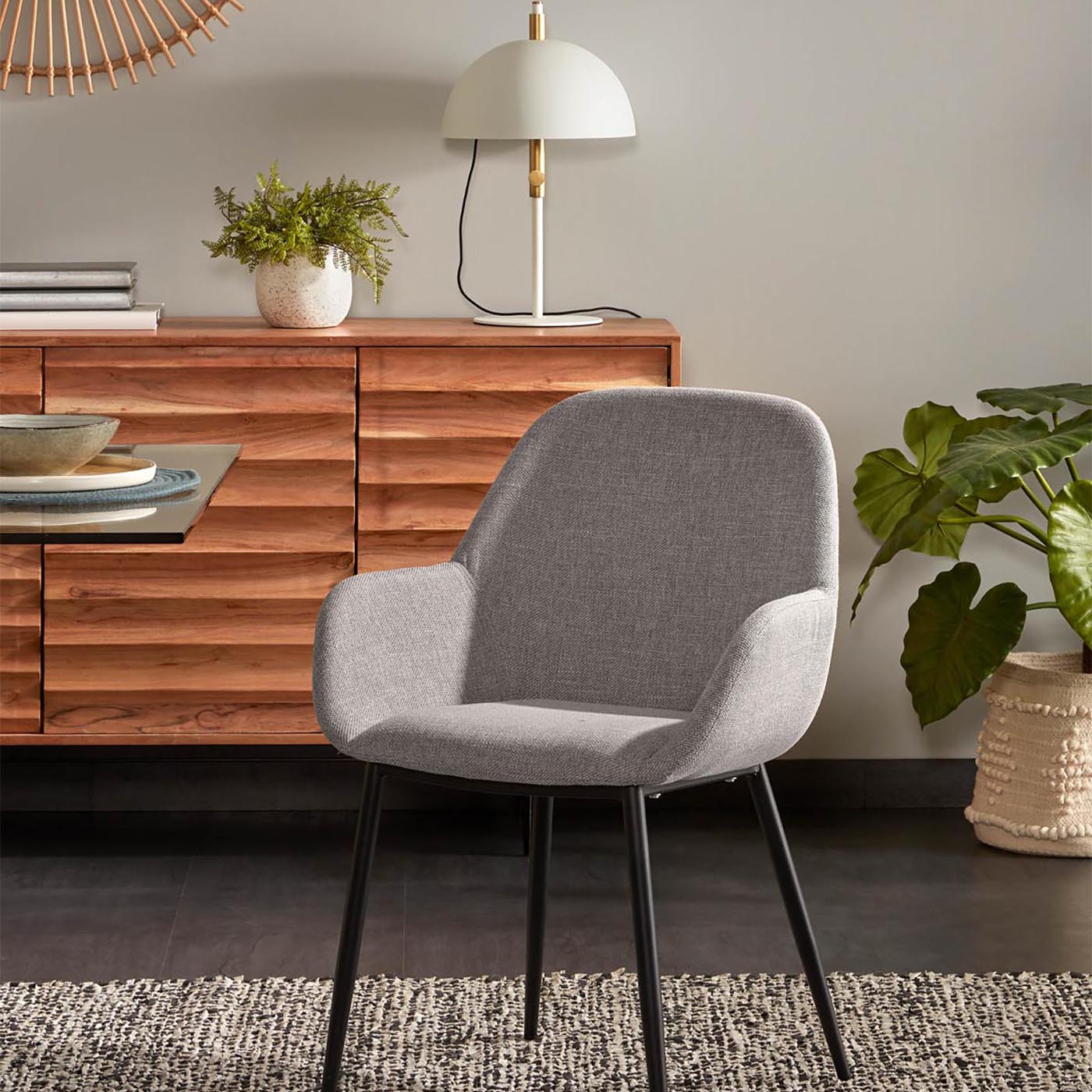 Die Sitzfläche ist mit einem hochwertigen Gewebe bezogen, das 5% des Gesamtmaterials ausmacht, und bietet eine angenehme Haptik sowie eine einfache Pflege. Unter der Polsterung aus 5% Polyurethanschaum verbirgt sich ein komfortabler Sitz, der auch bei längeren Mahlzeiten für Entspannung sorgt. Die Armlehnen bieten zusätzlichen Halt und tragen zu einem entspannten Sitzerlebnis bei. Entdecke auch unsere Polsterstühle für noch mehr Komfort.