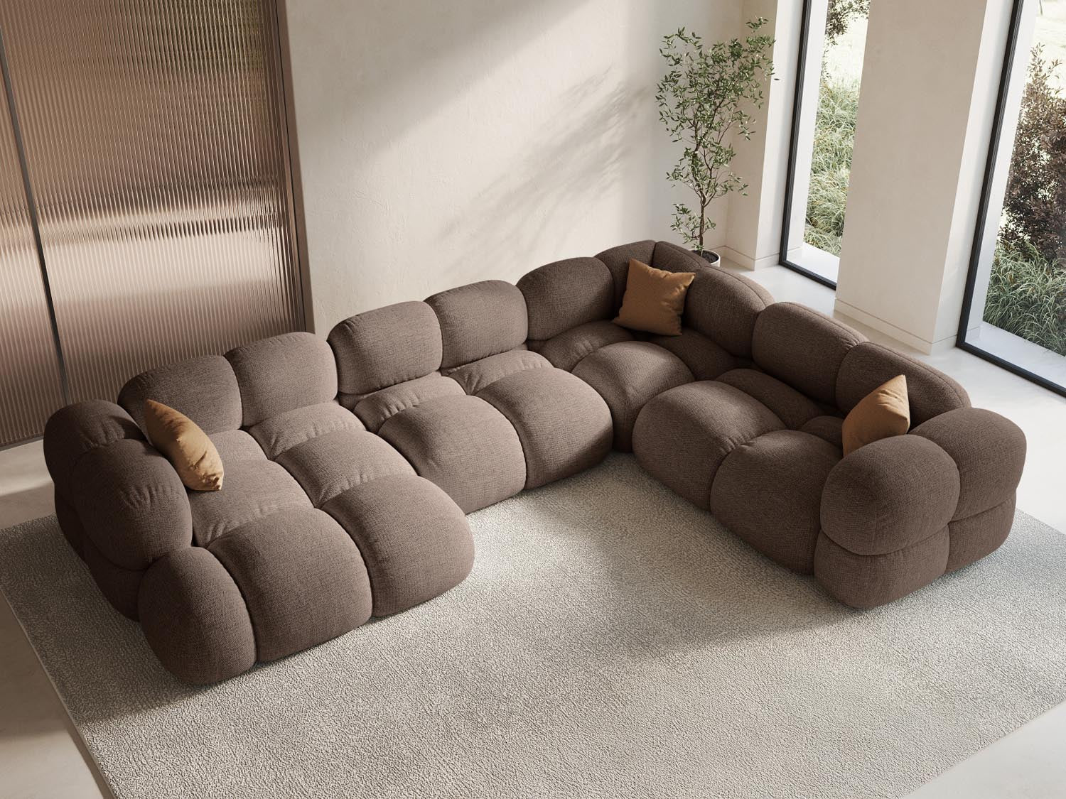 Das Loretto Panoramic Ecksofa besticht durch seine elegante Form und die Verwendung von hochwertigen Materialien. Der Bezug aus pflegeleichtem Stoff ist nicht nur angenehm weich, sondern auch langlebig und strapazierfähig. Die geschmackvolle Farbpalette ermöglicht es Ihnen, das Sofa perfekt in Ihre bestehende Einrichtung zu integrieren.