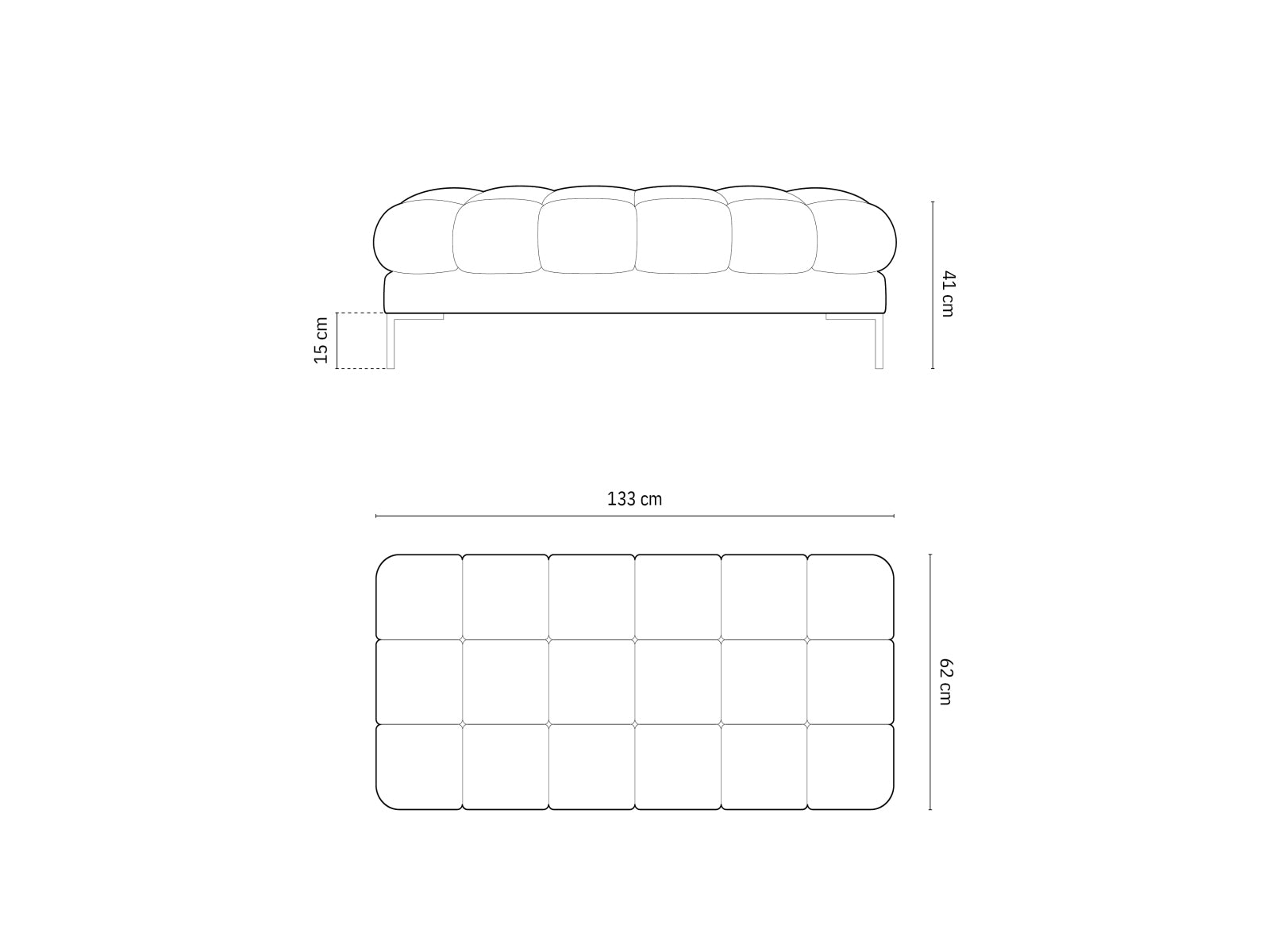Beinfarbe/Referenz: Goldmetall Beinhöhe (cm): 15 Struktur/Komponenten: Rahmen aus massivem Kiefernholz Spanplatten Faserplatten Sperrholz Federn goldene Metallbeine Nettovolumen (m³): 338086 Stoffzusammensetzung: Dick strukturierter Boucle-Stoff mit einem engen gedrehten Gewebe das einen multidimensionalen Eindruck erzeugt. Sehr hohe Abriebfestigkeit (Martindale-Test 100 570 g/m²) garantiert eine langfristige Nutzung ohne Anzeichen von Abnutzung. Besteht zu 93 % aus Polyester 6 % aus Acryl und 1 % aus Baumwolle. Der Stoff ist Oeko-Tex®-zertifiziert was bedeutet dass er völlig frei von schädlichen Chemikalien und sicher für den menschlichen Gebrauch ist. Um die Oeko-Tex Standard 100-Zertifizierung zu erreichen muss der Stoff getestet und zertifiziert werden um frei von schädlichen Mengen von mehr als 100 Substanzen zu sein die als gesundheitsschädlich bekannt sind. Sitzfüllung Zusammensetzung: Polyurethanschaum 30 kg/m³ mit Wattierung 200 g/m²