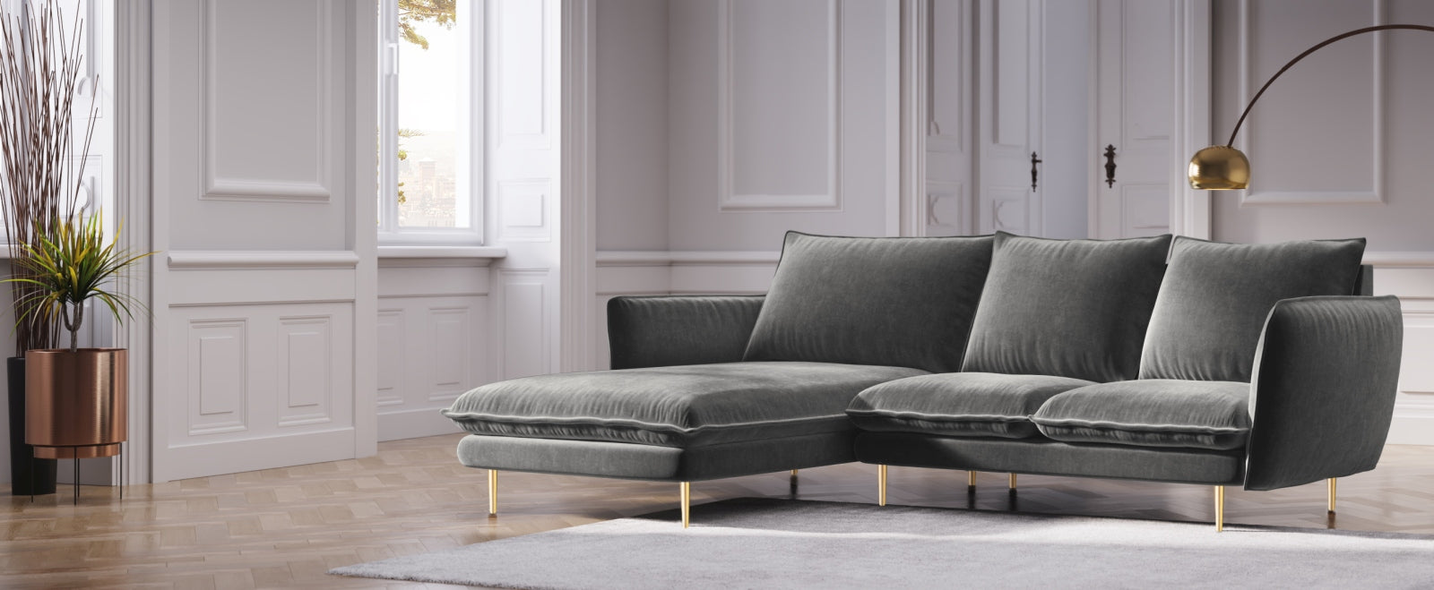 Das Vienna Velour Ecksofa ist die perfekte Ergänzung für jedes moderne Zuhause. Kombinieren Sie es mit unseren Sofas oder Wohnzimmermöbeln, um ein harmonisches Gesamtbild zu schaffen. Ob im Wohnzimmer, im Gästezimmer oder in einem offenen Wohnkonzept – dieses Sofa passt sich flexibel an Ihre Bedürfnisse an.
