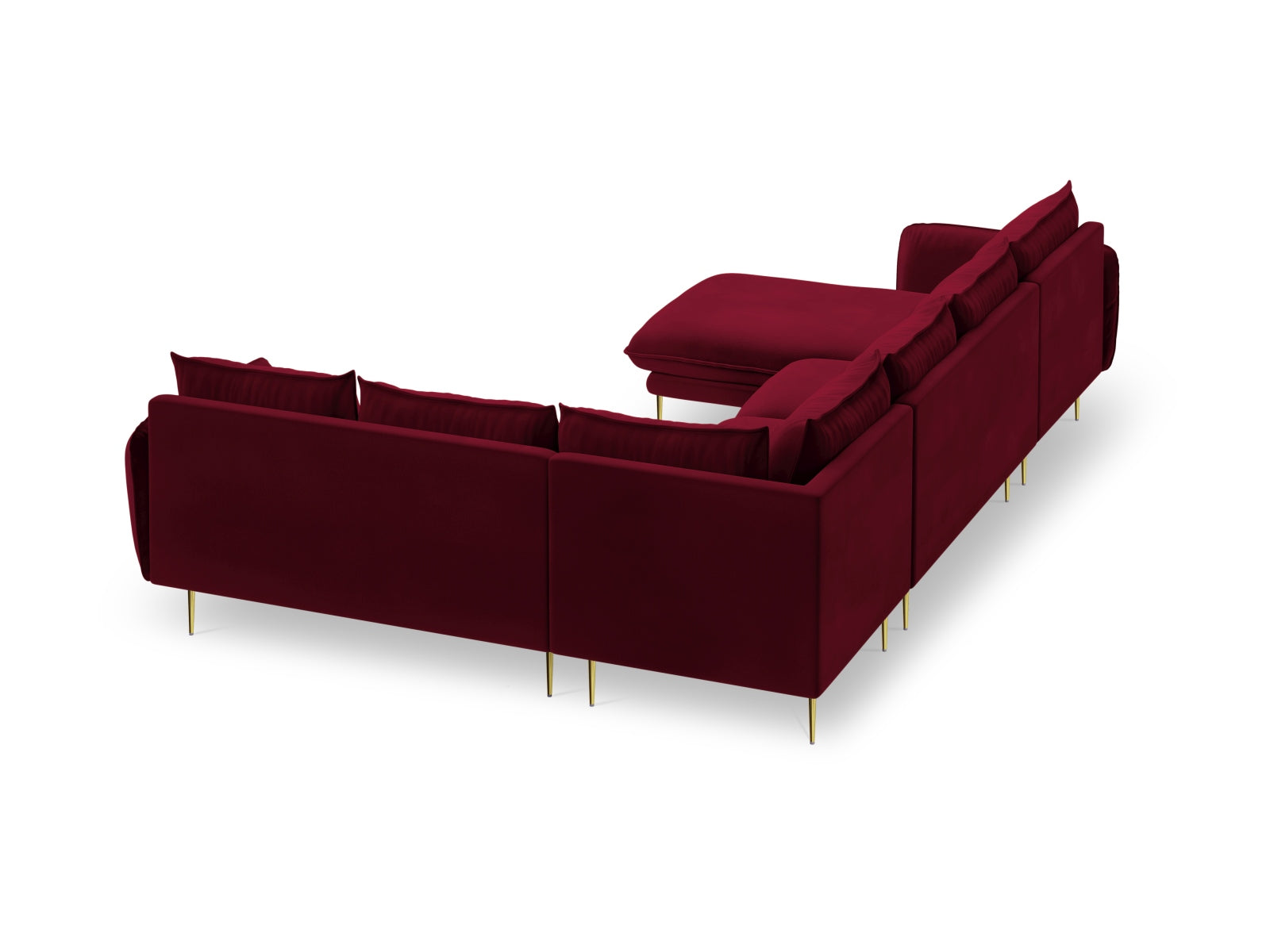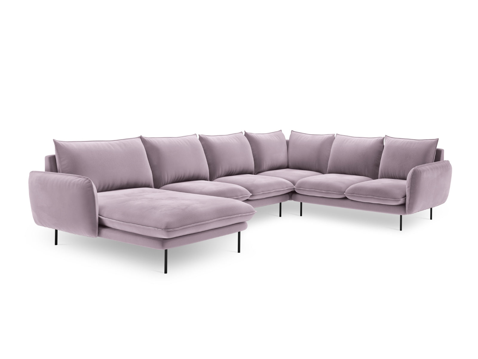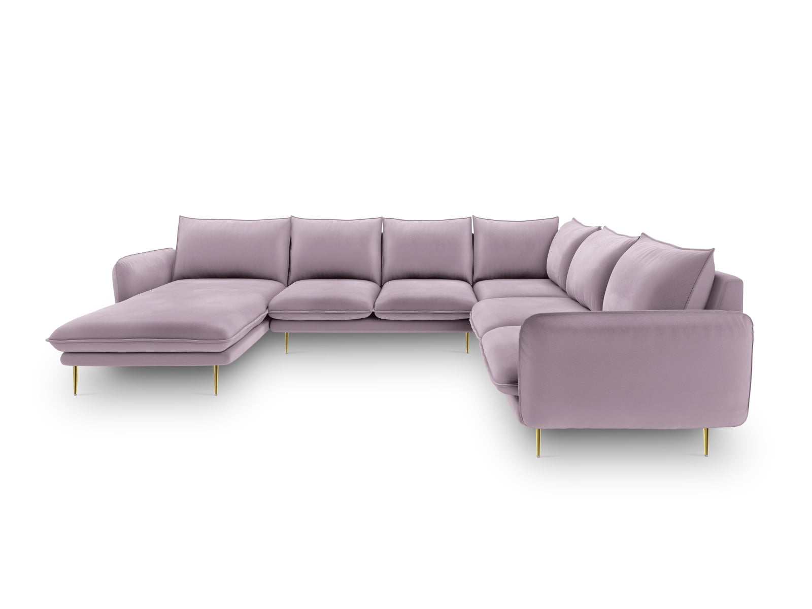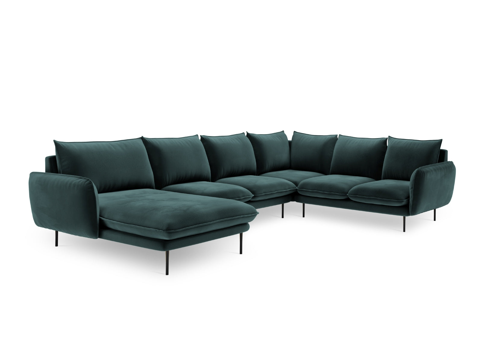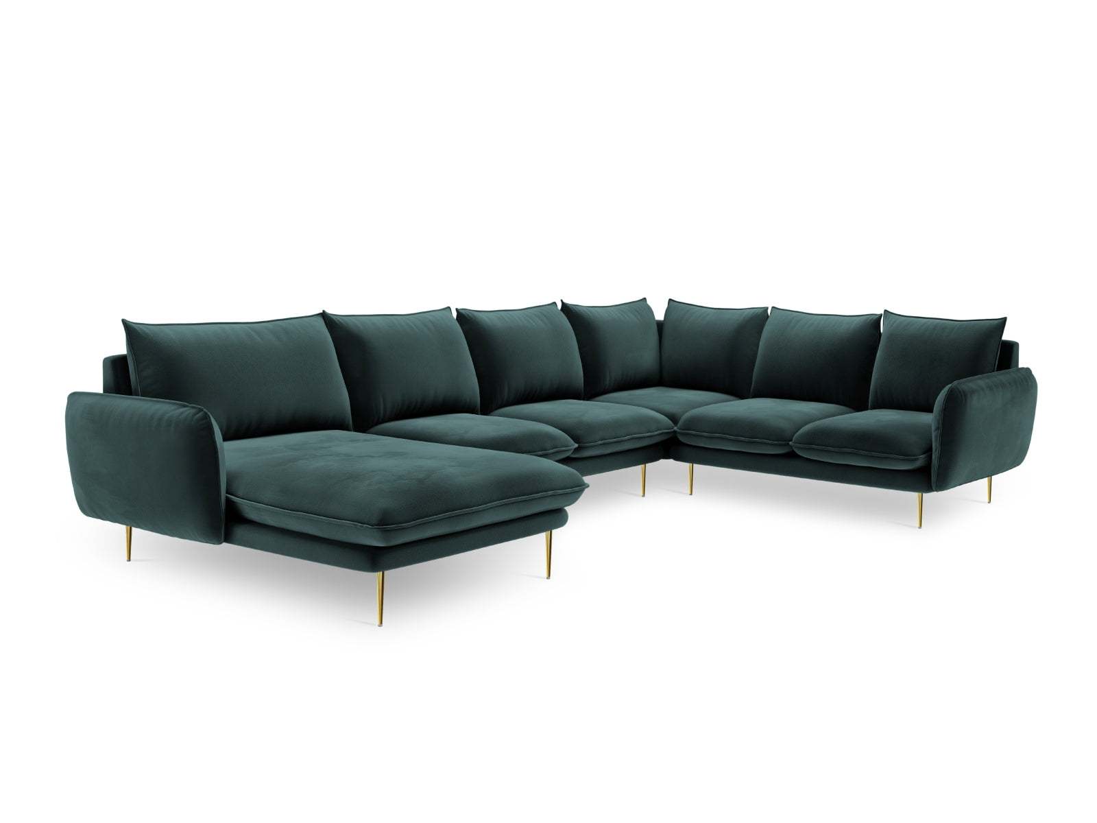 Entdecken Sie das Vienna Velour Panoramic Ecksofa rechts von Cosmopolitan Design, ein stilvolles und komfortables Möbelstück, das perfekt für Ihr Wohnzimmer geeignet ist. Mit einer großzügigen Breite von 235 cm bietet dieses 7-Sitzer Sofa ausreichend Platz für Familie und Freunde. Genießen Sie gesellige Abende und entspannte Stunden in einem modernen Ambiente.