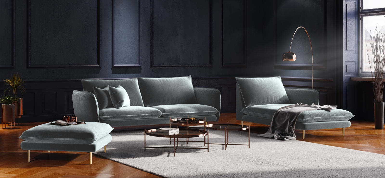 Hergestellt aus hochwertigen Materialien, garantiert das Vienna Velour Sofa Langlebigkeit und Stabilität. Der robuste Rahmen und die bequemen Polsterungen sorgen dafür, dass Sie viele Jahre Freude an diesem Möbelstück haben werden. Das edle Velour ist nicht nur schön anzusehen, sondern auch pflegeleicht und strapazierfähig.