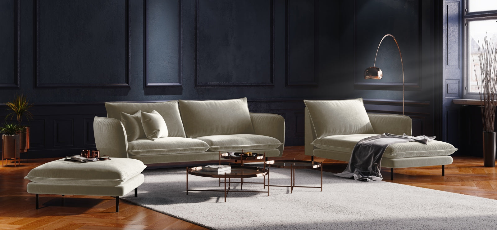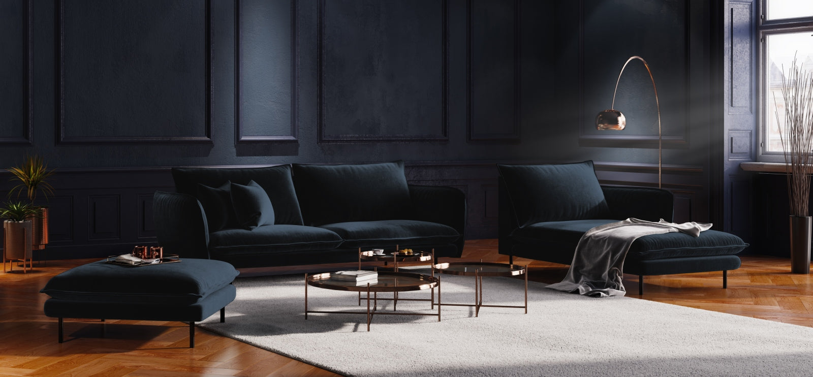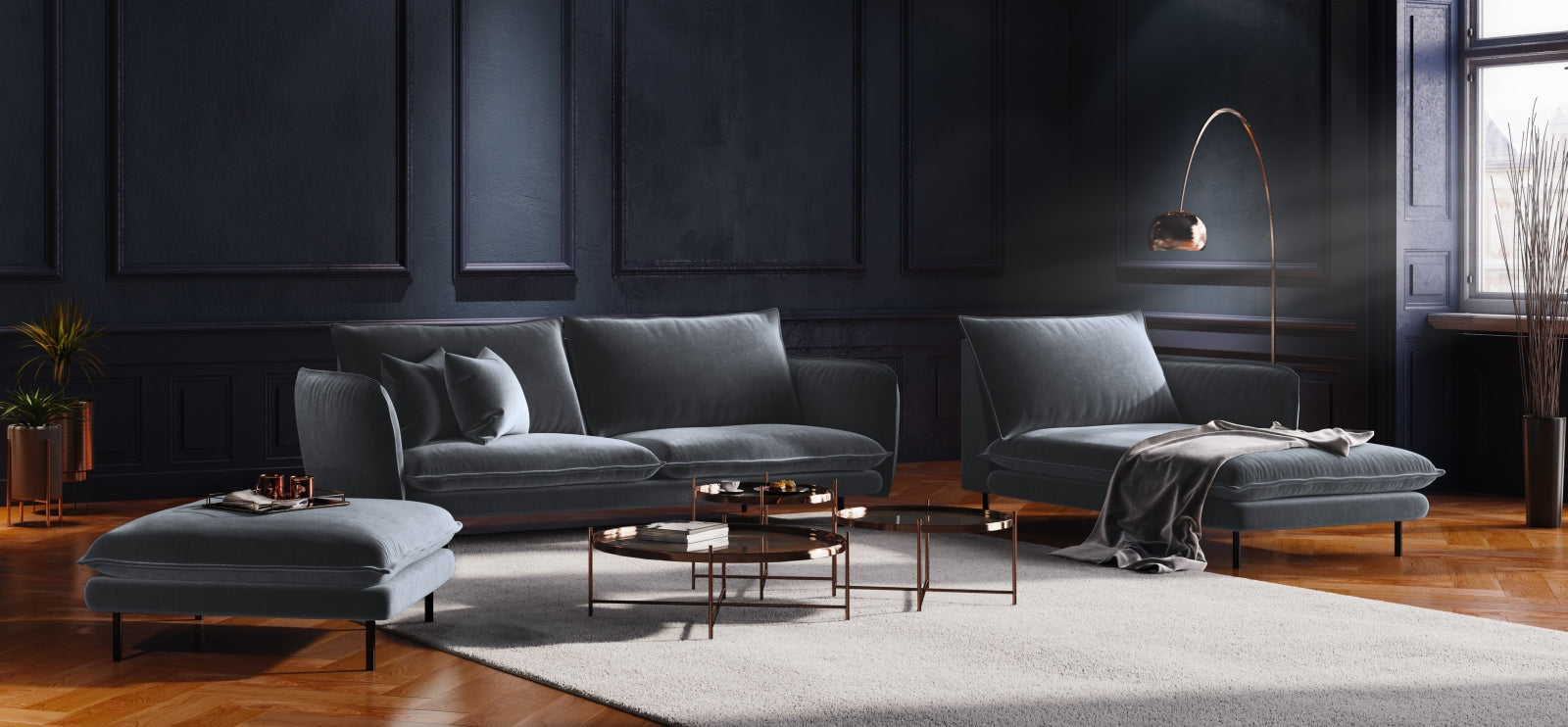 Das Vienna Velour Sofa ist nicht nur ein Blickfang, sondern auch äußerst funktional. Die L-Sofa rechts Konfiguration ermöglicht es Ihnen, das Sofa optimal in Ihre Wohnlandschaft zu integrieren. Ob für gesellige Abende mit Freunden oder entspannte Stunden allein – dieses Sofa passt sich Ihren Bedürfnissen an.