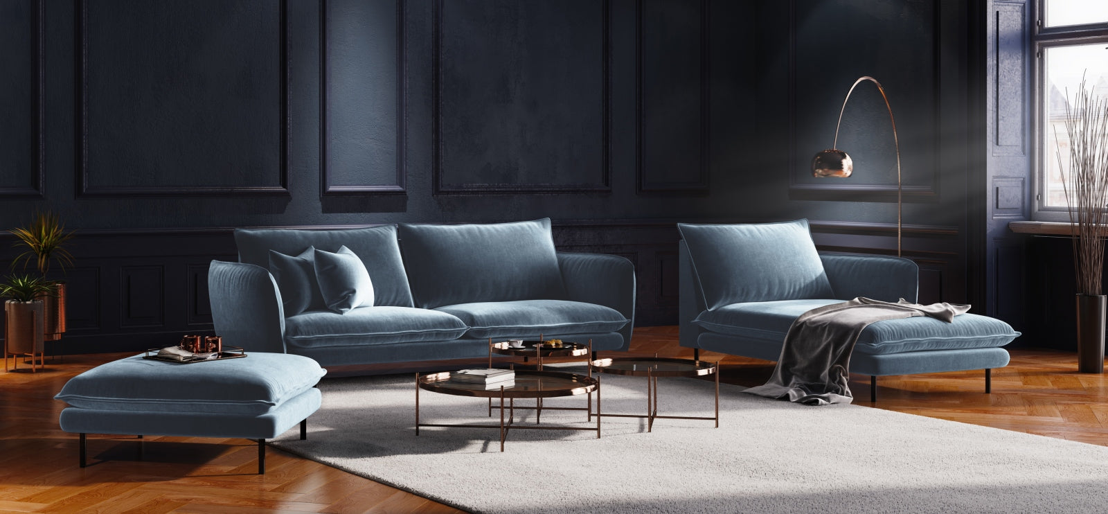 Die Pflege des Vienna Velour Sofas ist unkompliziert. Regelmäßiges Absaugen und gelegentliches Abwischen mit einem feuchten Tuch reichen aus, um die Schönheit des Sofas zu erhalten. Vermeiden Sie aggressive Reinigungsmittel, um das Velour nicht zu beschädigen.